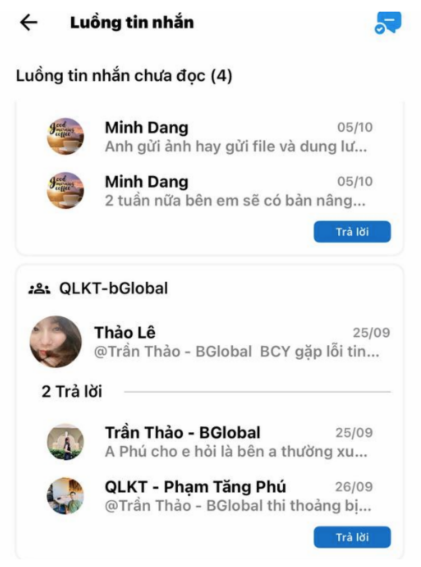 - Luồng tin nhắn là luồng bao gồm tin nhắn và các phản hồi trực tiếp của tin nhắn đó, được gắn vào ngay dưới tin nhắn, giúp việc theo dõi theo luồng thông tin được thuận tiện hơn.