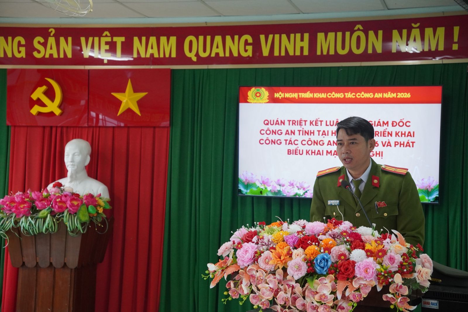 Phát biểu chỉ đạo tại Hội nghị, đại diện lãnh đạo Công an tỉnh và lãnh đạo địa phương ghi nhận kết quả công tác của đơn vị, đồng thời yêu cầu Công an xã tiếp tục phát huy tinh thần trách nhiệm, xây dựng lực lượng trong sạch, vững mạnh, chính quy, đáp ứng yêu cầu nhiệm vụ trong tình hình mới.