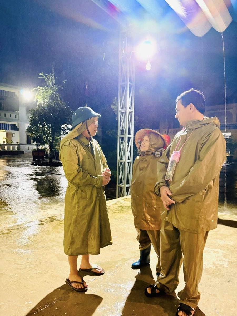 Thường trực Đảng ủy, lãnh đạo UBND động viên nhân dân đến nơi ở an toàn