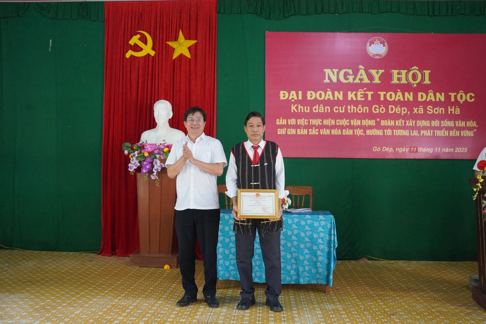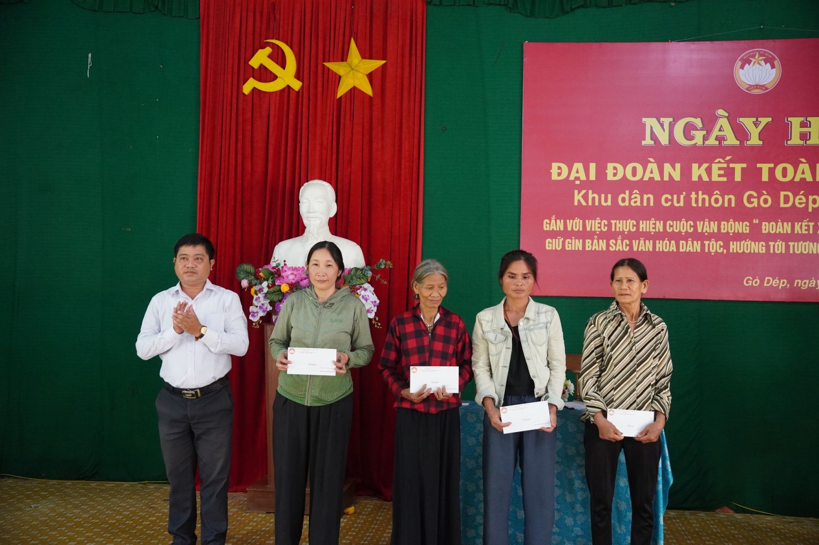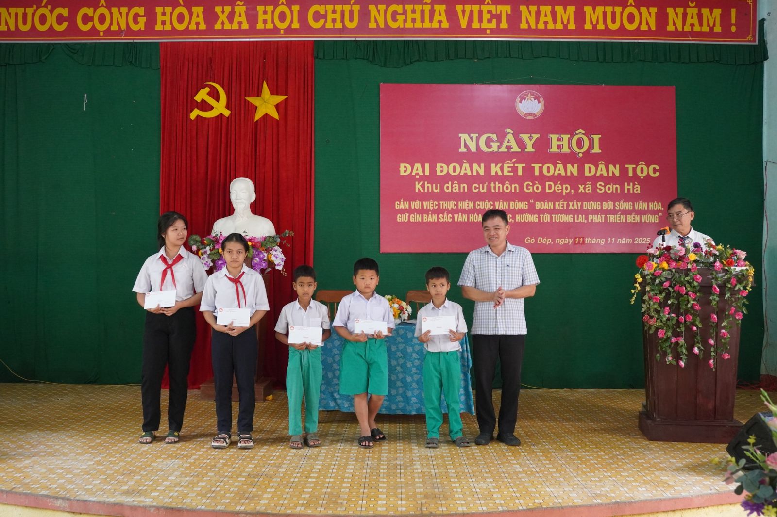 Dịp này, Uỷ ban MTTQVN tỉnh, Uỷ ban MTTQVN xã Sơn Hà, thôn Gò Dép và các mạnh thường quân đã tặng các phần quà nhân Ngày hội cho các gia đình tiêu biểu; gia đình có hoàn cảnh khó khăn và các em học sinh có hoàn cảnh khó khăn nhưng phấn đấu vươn lên trong học tập. Tuy những phần quà không lớn, nhưng thể hiện được sự động viên, khích lệ để các gia đình khó khăn và các em học sinh tiếp tục vươn lên./.